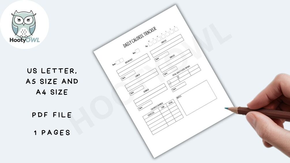 Stay on top of your nutrition and fitness goals with this Daily Calorie Tracker! This easy-to-use one-page printable helps you log your calories for each meal and snack, track your fluid intake, and record your calories burned through exercise. Perfect for anyone looking to manage their diet and stay on track!