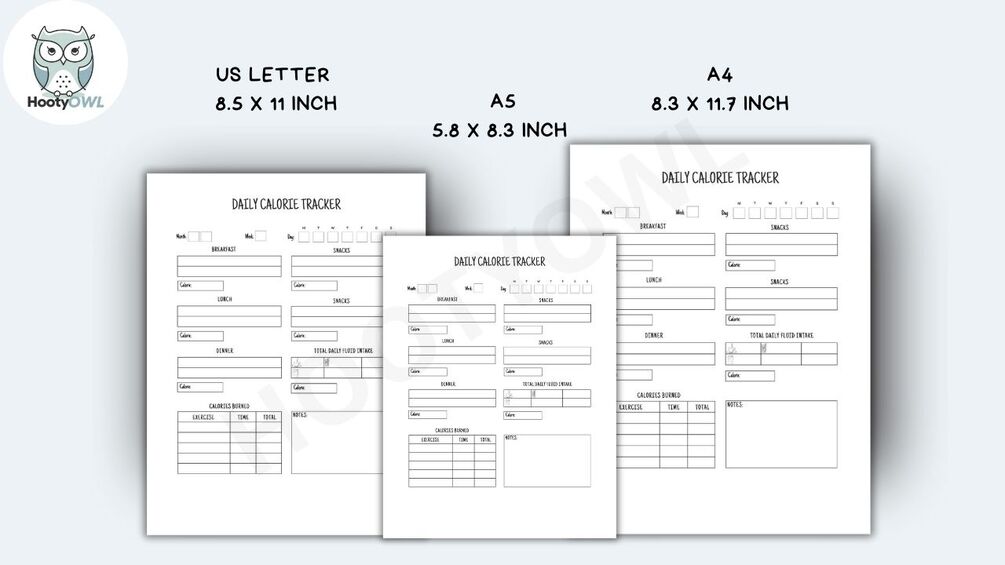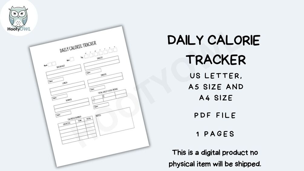 Daily Calorie Tracker Printable Calorie Log, Daily Calorie Intake Tracker PDF Download A4 A5 US Letter